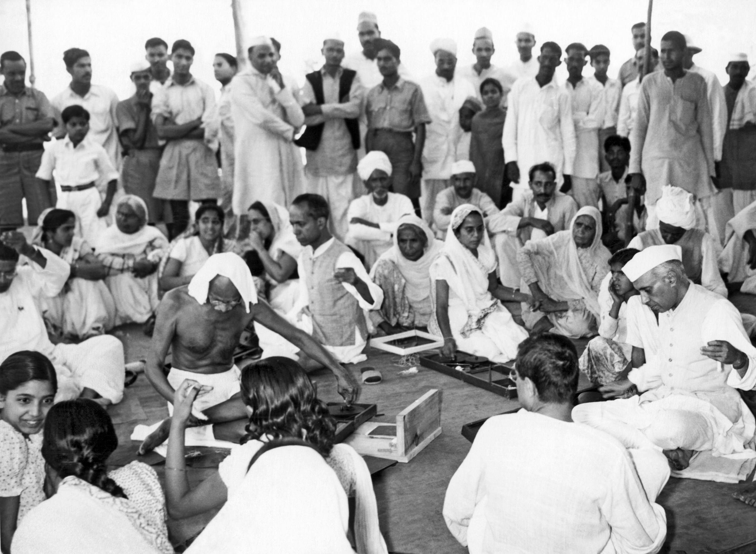 Gandhi era contra a violência, defendendo as formas pacíficas de protesto como, por exemplo, greves, passeatas, retiros espirituais e jejuns.